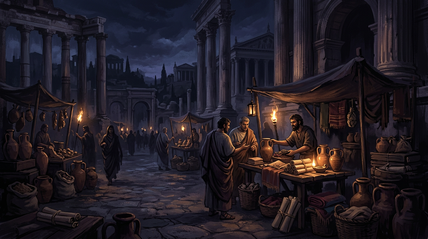Merchants in Roman forums read faces, remembered names, and judged intent in real time. Every transaction was a 1:1 decision. Intuitive, personal, unscalable.